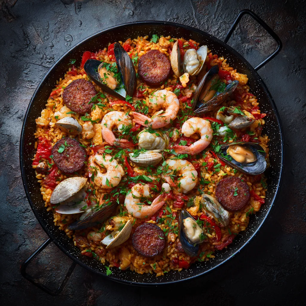 La Paella de Mixta de PaellArte es una celebración de contrastes, uniendo lo mejor del mar y la tierra en un solo plato. Nuestros maestros paelleros mezclan chorizo Santarrosano o Español, pollo, lomo de cerdo, camarones, y una mixtura de mariscos, creando una sinfonía de sabores intensos.